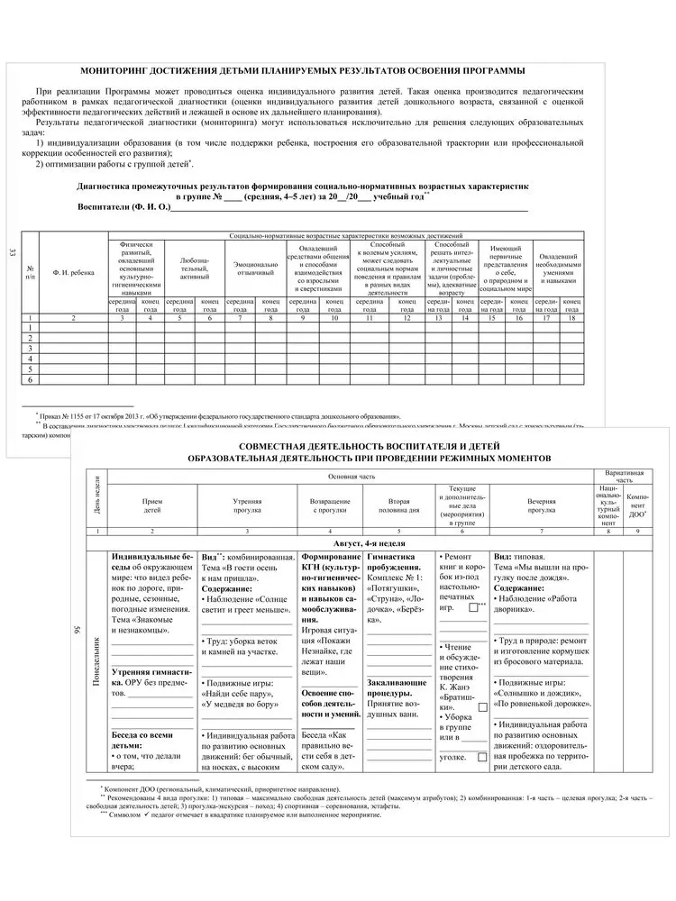 Удобное табличное размещение материала позволяет педагогу дополнить основную часть программы вариативными компонентами и обеспечить целостность и системность психолого-педагогического сопровождения, успешность каждого ребенка в течение всего пребывания в детском саду. Каждая таблица построена так, чтобы педагог мог ориентироваться в работе на основную часть программы, дополнив ее при заполнении пустографок, и вариативную (национально-культурный, региональный компонент, компонент ДОО), для которой предусмотрены дополнительные колонки.