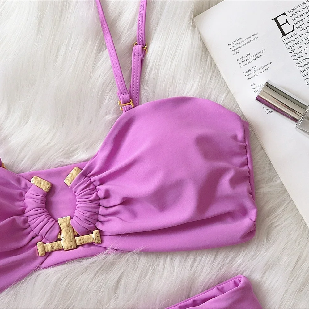 Купальник женский с металлическими кольцами, пикантный бикини в бразильском стиле, одежда для плавания, комплект бикини из двух предметов, высокая талия, 2021