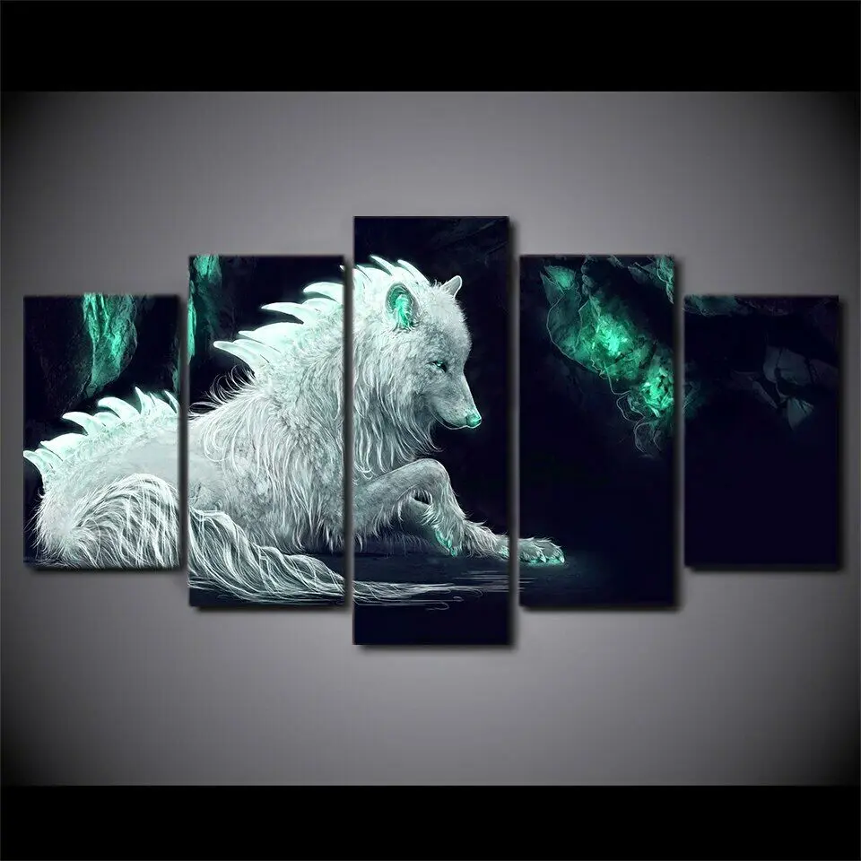 Модульная печать, 5 шт., животные, волк, луна, холст, живопись, дом...