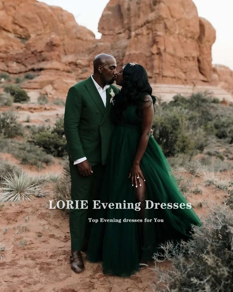Лори изумрудно-зеленый, на выпускной, платье с фатиновой юбкой, а-силуэт, длинный со складками боковых Разделение в африканском стиле; Вечерняя Свадебная вечеринка платье для Выпускной 2021