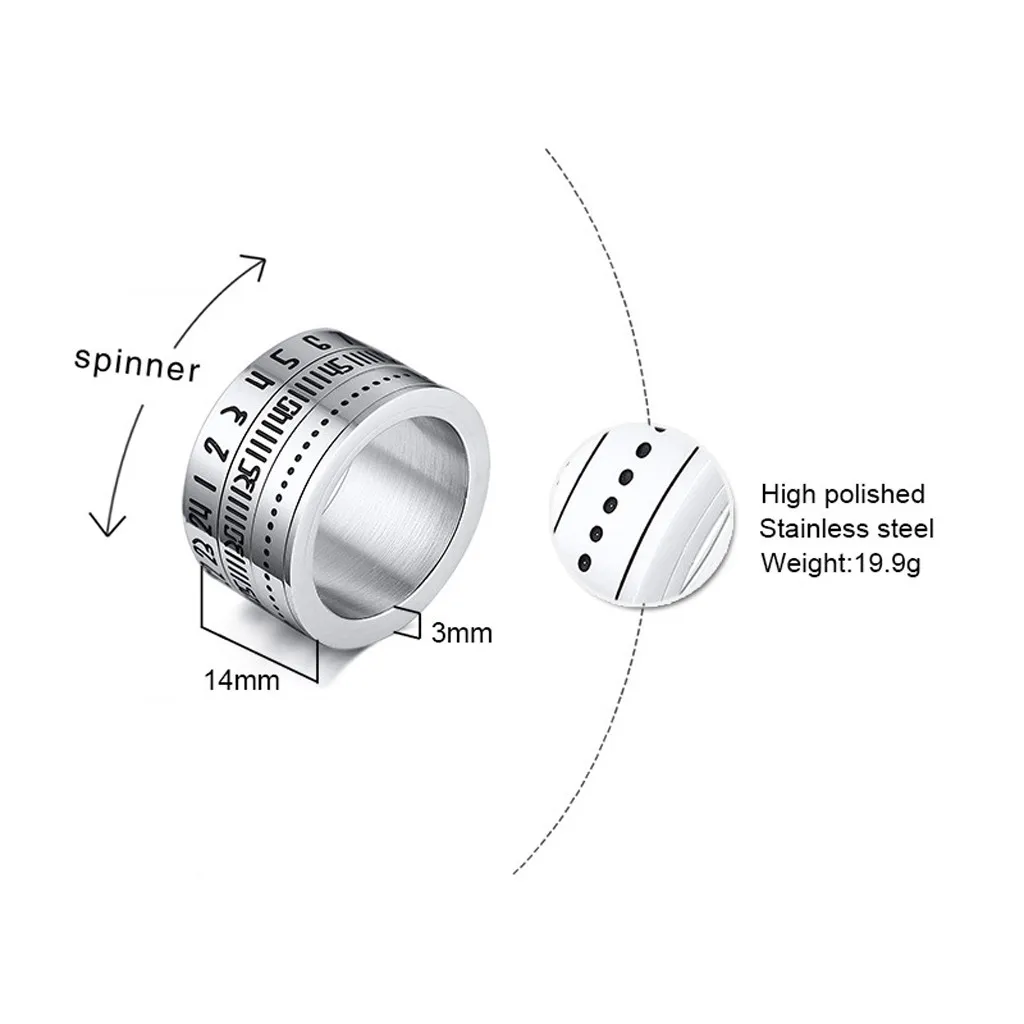 Волшебное мужское кольцо в стиле ретро, широкий вращающийся номер, стальное кольцо, римские цифры, кольцо, ювелирное изделие, мужские календарные кольца, креативные