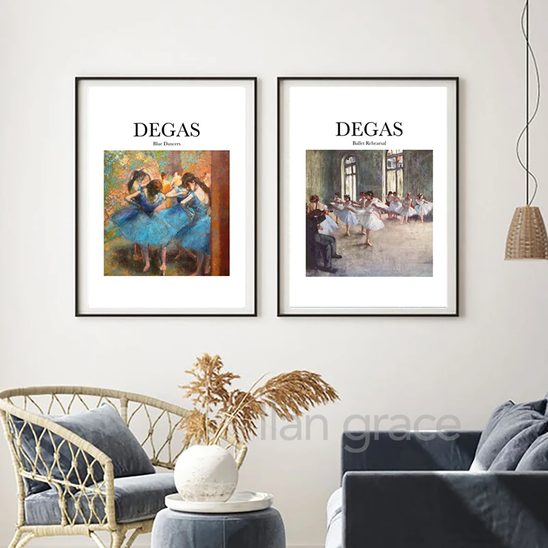 Абстрактная масляная живопись Эдгара дегаса на холсте для балета, абстрактная репетиция, плакат, синие танцоры, принты, танцевальная комната, настенные художественные картины, украшение