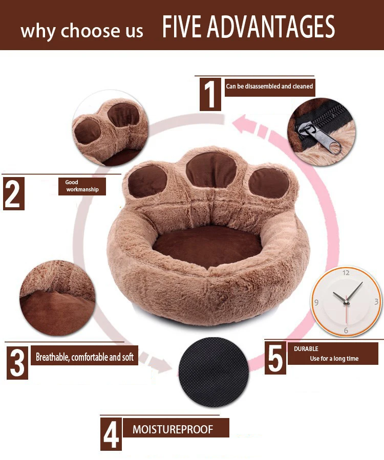 Диван-кровать для собаки, диван, короткое плюшевое гнездо для питомцев, зимний, теплый коврик для сна, милый медведь, лапа, стиль чихуахуа, домик для щенков, аксессуары для котенка