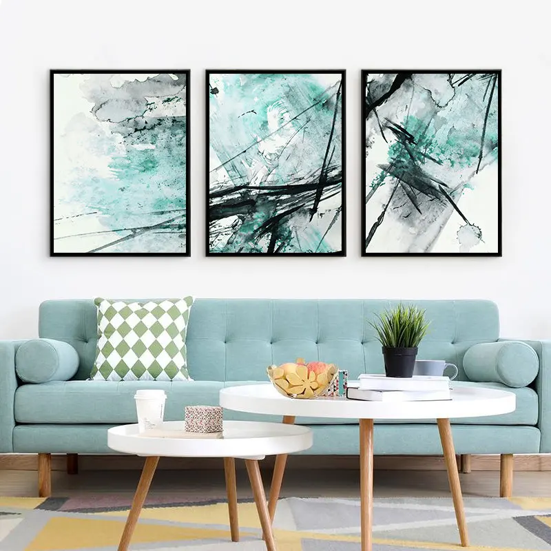 Nordic Стиль абстрактный черно светильник синий светильник зеленые чернила холсты для рисования печать настенных постеров Гостиная домашний декор