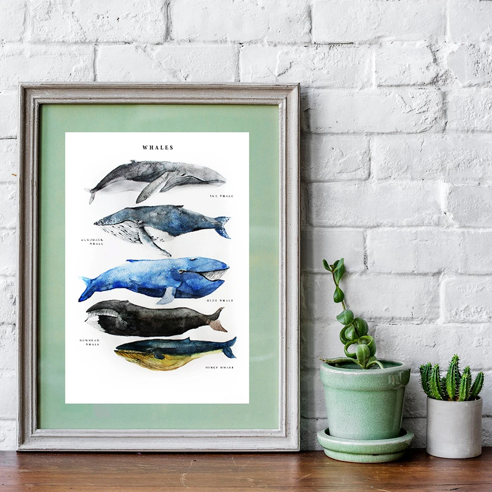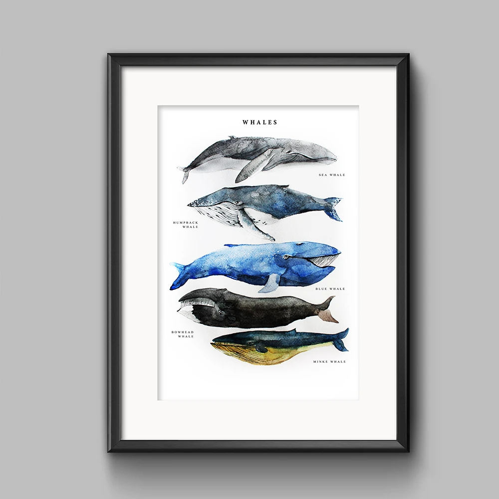 Печать рыбы и плакат киты акварельные стены Искусство Холст Живопись иллюстрация настенные картины для детской комнаты для детей