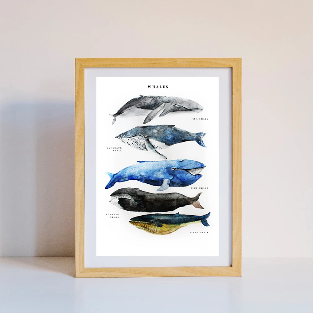 ThemeFish Whales Watercolor Illustration Nursery Wall Pictures