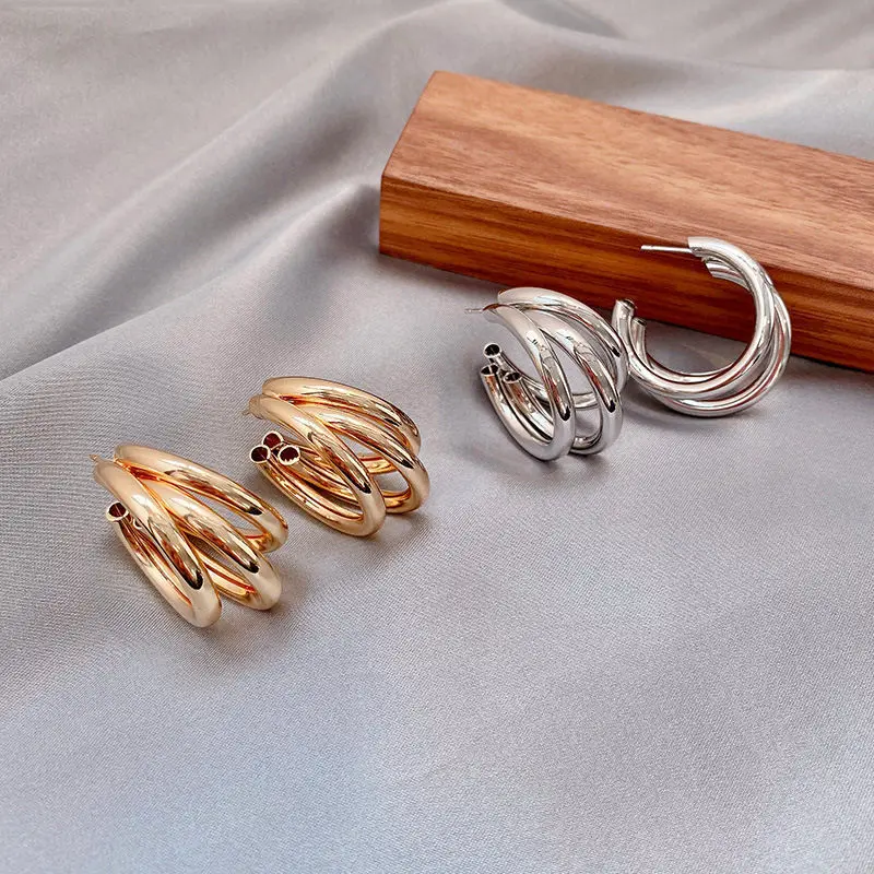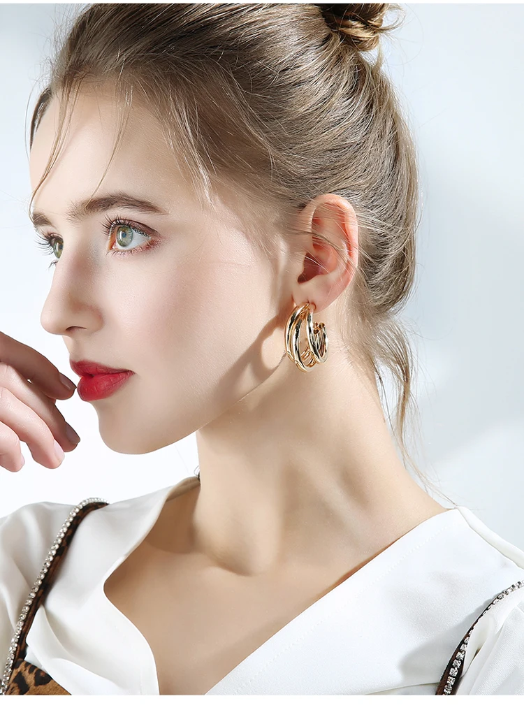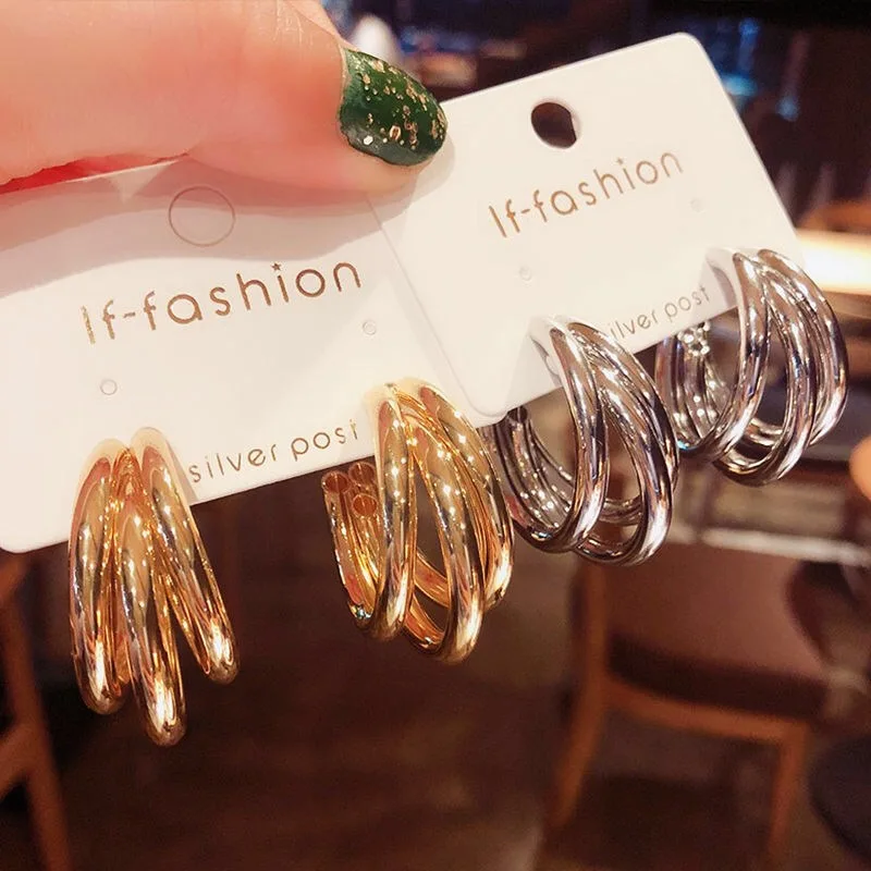 Серьги-кольца женские, металлические, золотого цвета, в Корейском стиле, 2021
