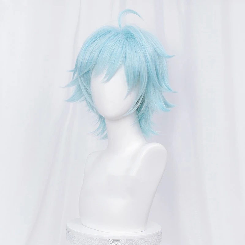 Парик Chong Yun для косплея Чун Юнь с короткими волосами из синтетики светло-голубого цвета, для ролевых игр на Хэллоуин, карнавал Вечерние