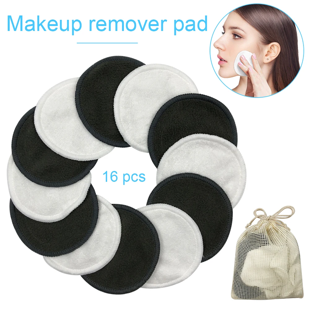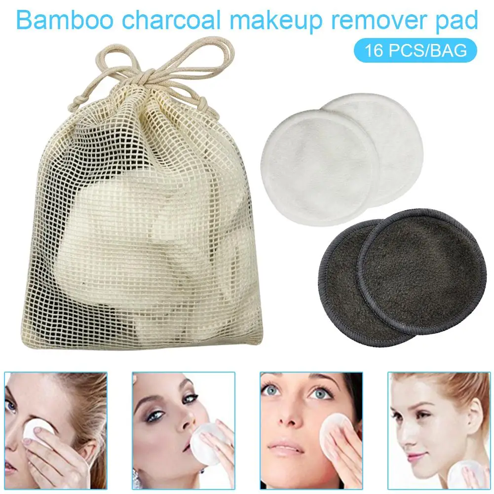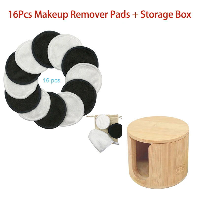 Многоразовые ватные прокладки для снятия макияжа, 16 шт., моющиеся круглые бамбуковые прокладки для макияжа, прокладки для ухода за кожей для кормления с футляром для хранения