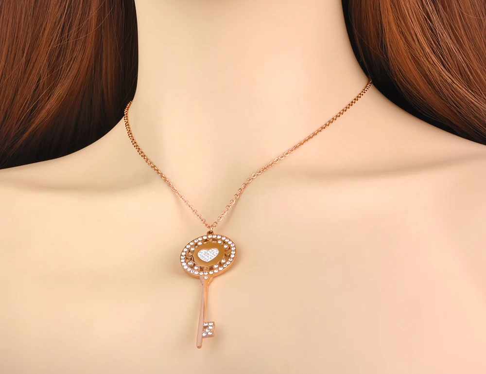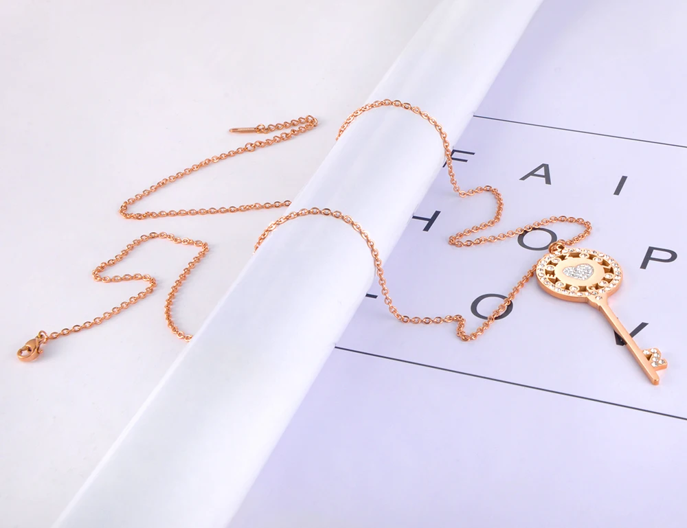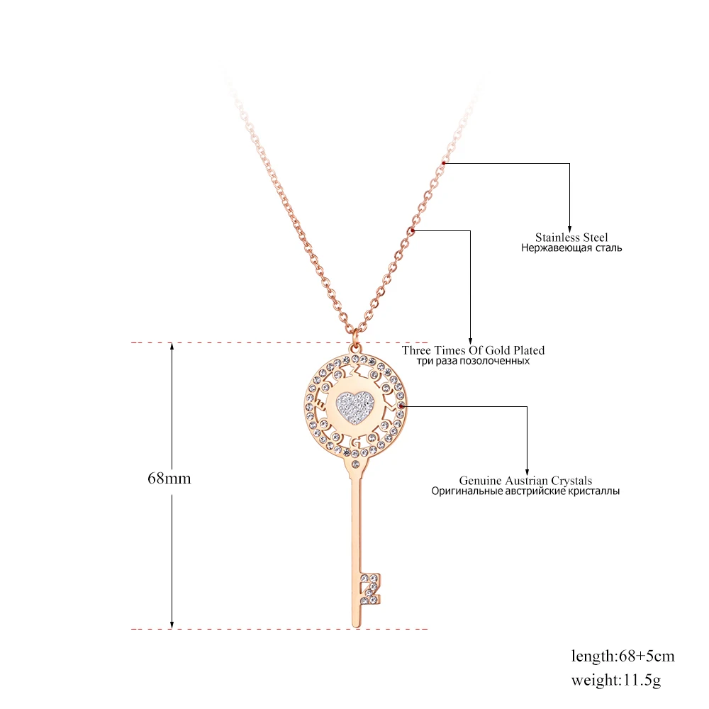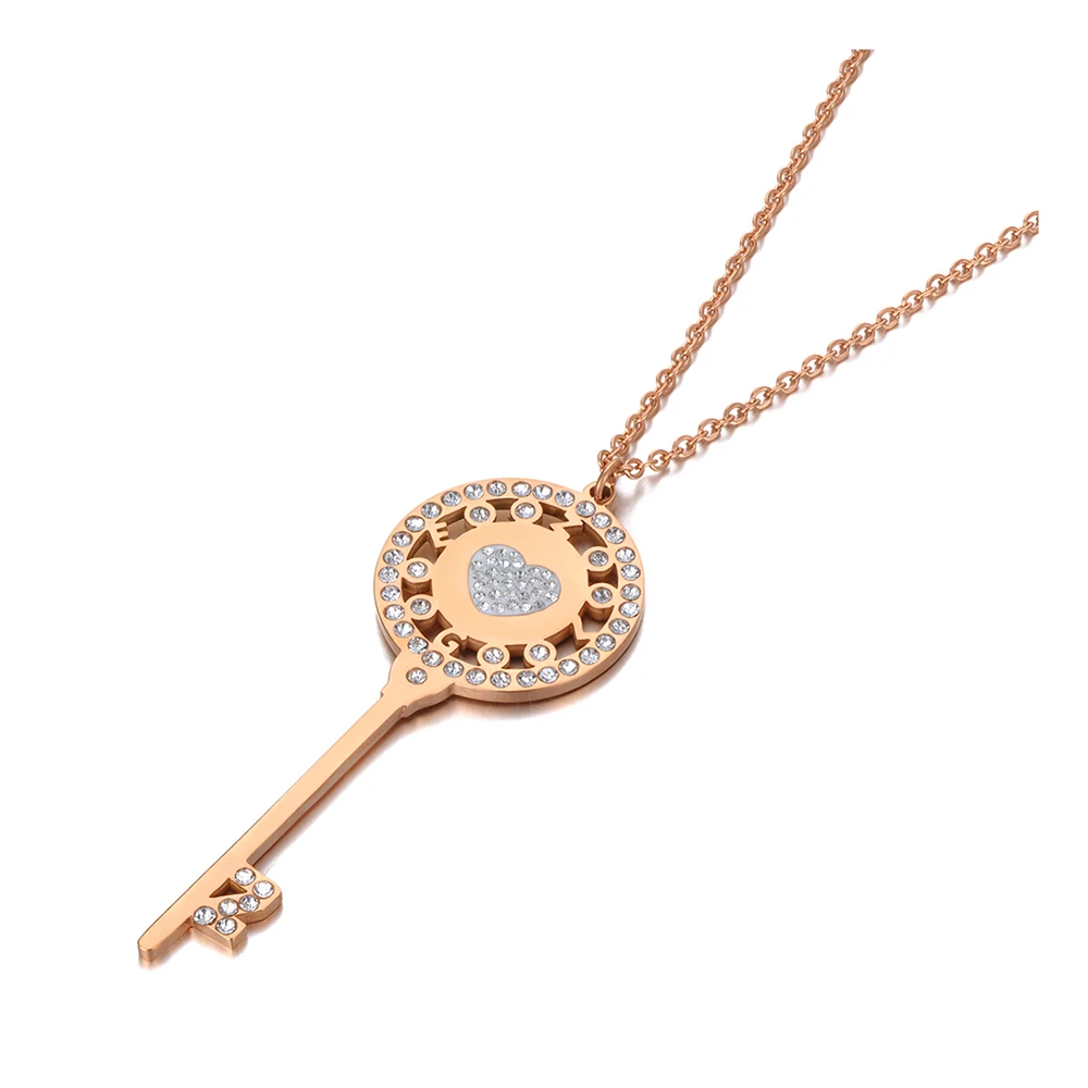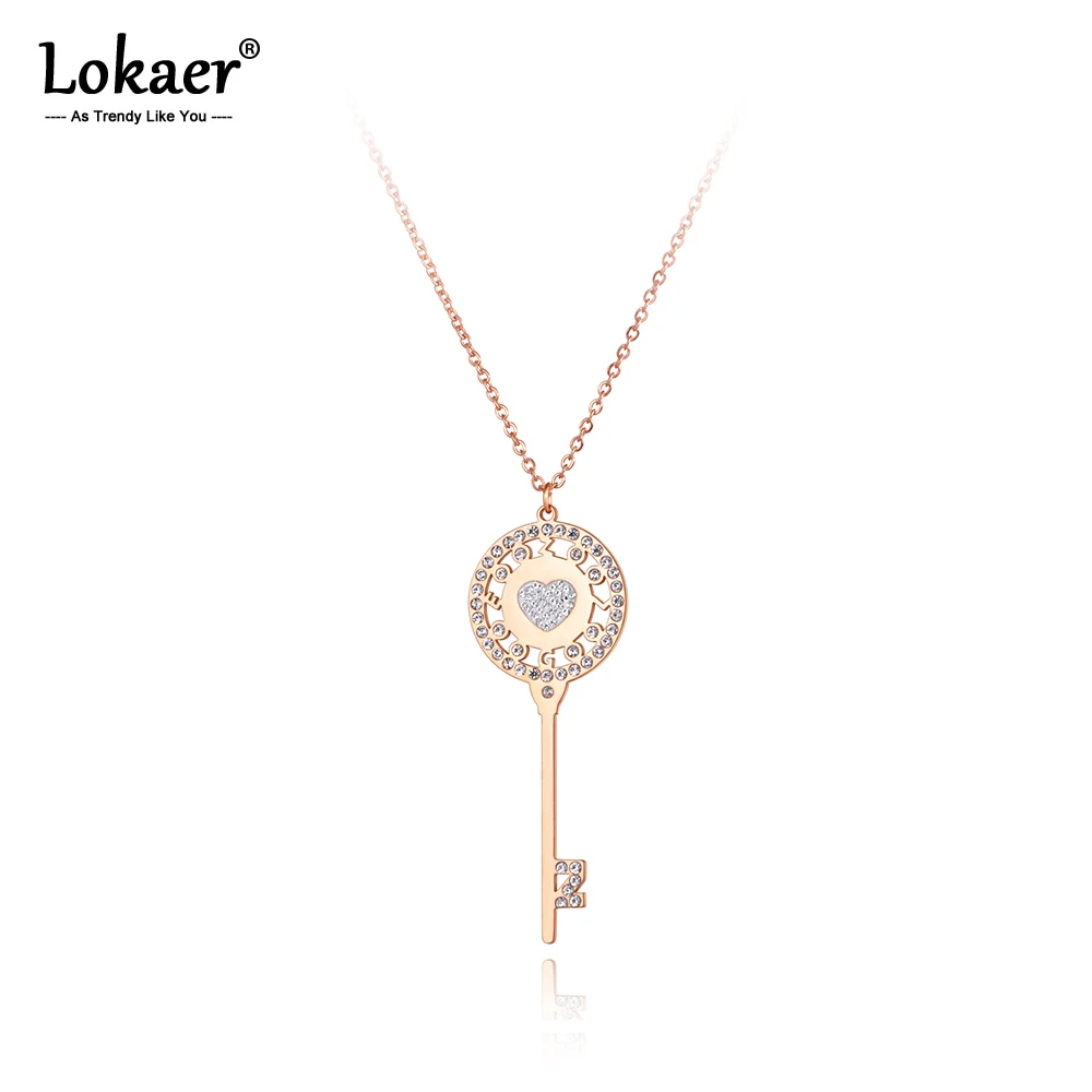 Цепочка Lokaer N21036 женская с кулоном в виде ключа из нержавеющей стали и титана с фианитами, ожерелье в богемном стиле с цепочкой в форме сердца на свитер