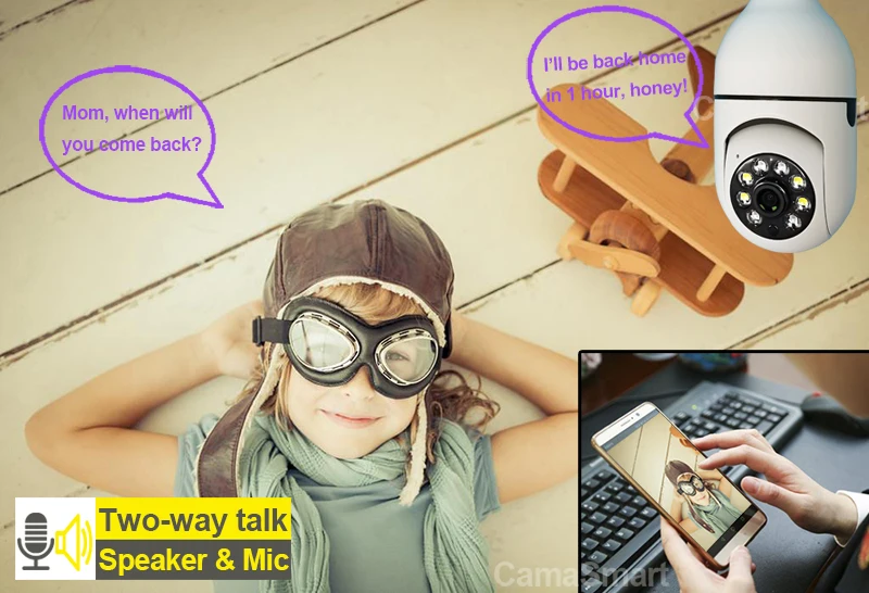 3MP Ycc365 Мини Wi-Fi камера безопасности с E27 Гибкая лампочка гнездо HD цветное ночное видение двусторонний разговор легко установить домашний монитор