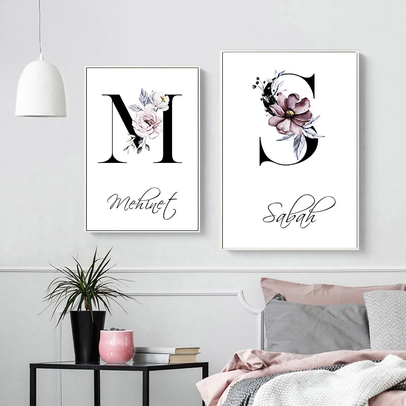 Цветочный буквенный персональный постер с именем на заказ, романтич...
