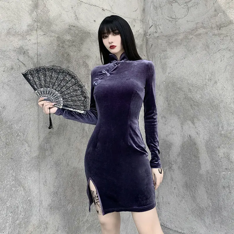 Женское платье в китайском стиле, готическое облегающее мини-платье...