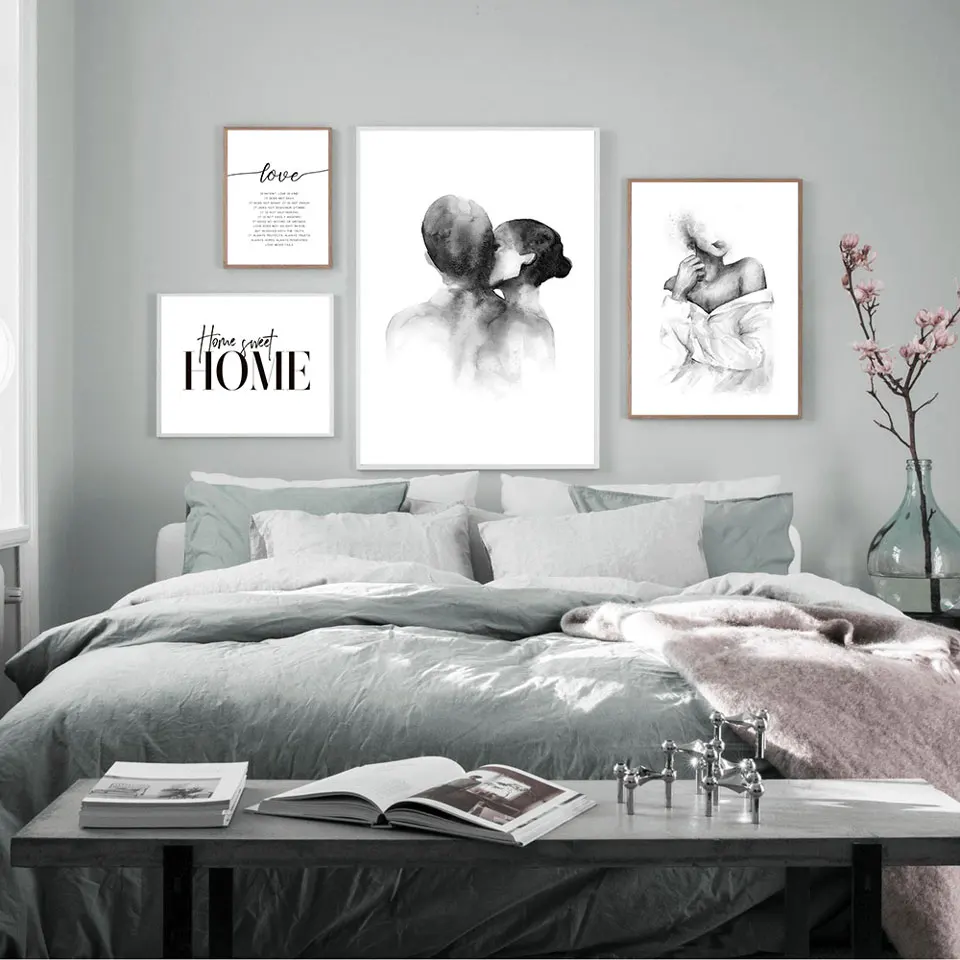 Настенный плакат в скандинавском стиле с цитатами, черно-белая любовь, минималистичный принт, поцелуй на плече, ручная картина для декора гостиной