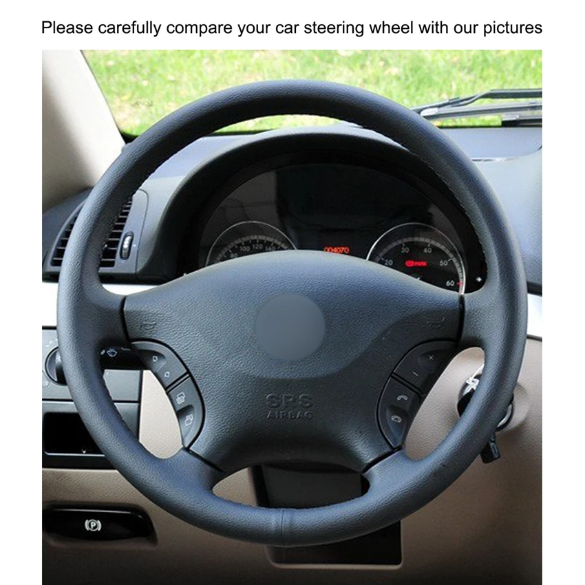 Сшитый вручную черный PU искусственная кожа Чехол рулевого колеса а...