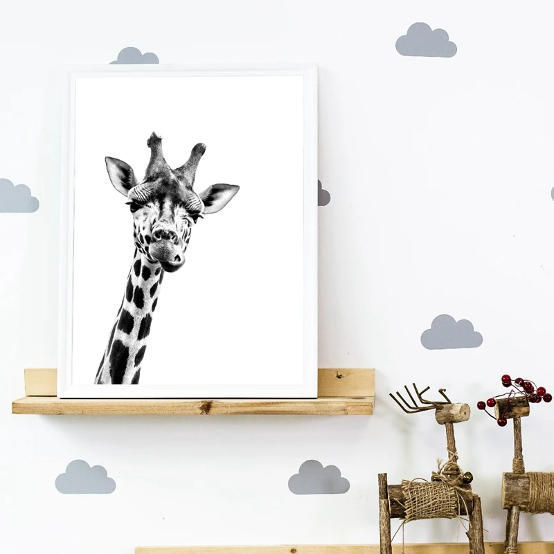 Черно-белый милый жираф животное холст плакат сафари настенное Искусство Живопись Детская фотография скандинавский принт для детской комнаты декор