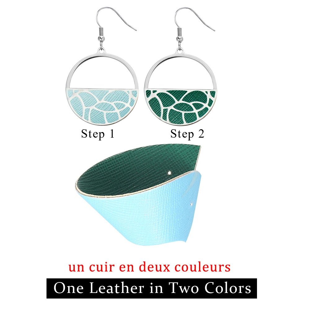 Женские серьги-подвески из нержавеющей стали, с кожаными вставками
