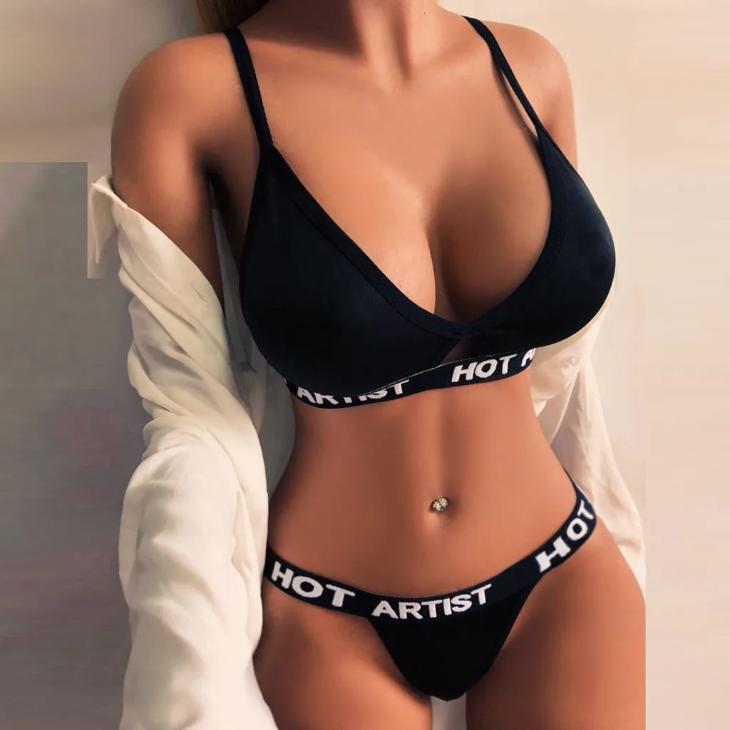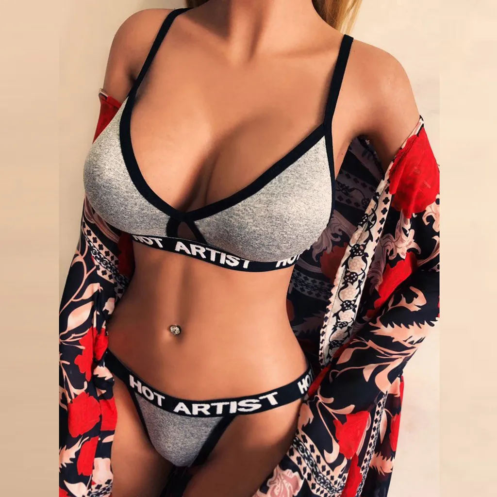 Женское сексуальное нижнее белье, комплекты из бюстгальтера и трусиков, пижама с буквенным принтом на косточках, нижнее белье, экзотический комплект, ночное белье 2022
