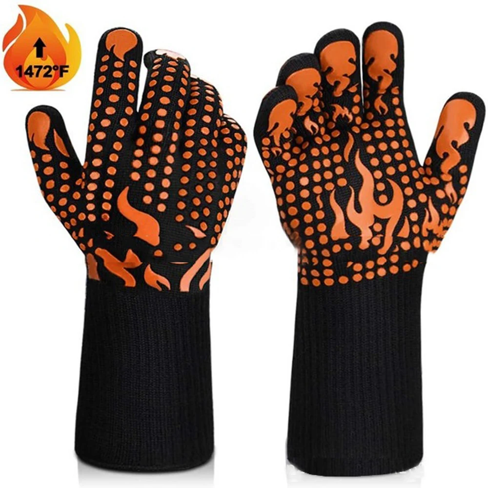 Перчатки для барбекю, перчатки для духовки с высокой термостойкостью, 500, 800 градусов, огнестойкие, для барбекю, теплоизоляционные перчатки для микроволновой печи