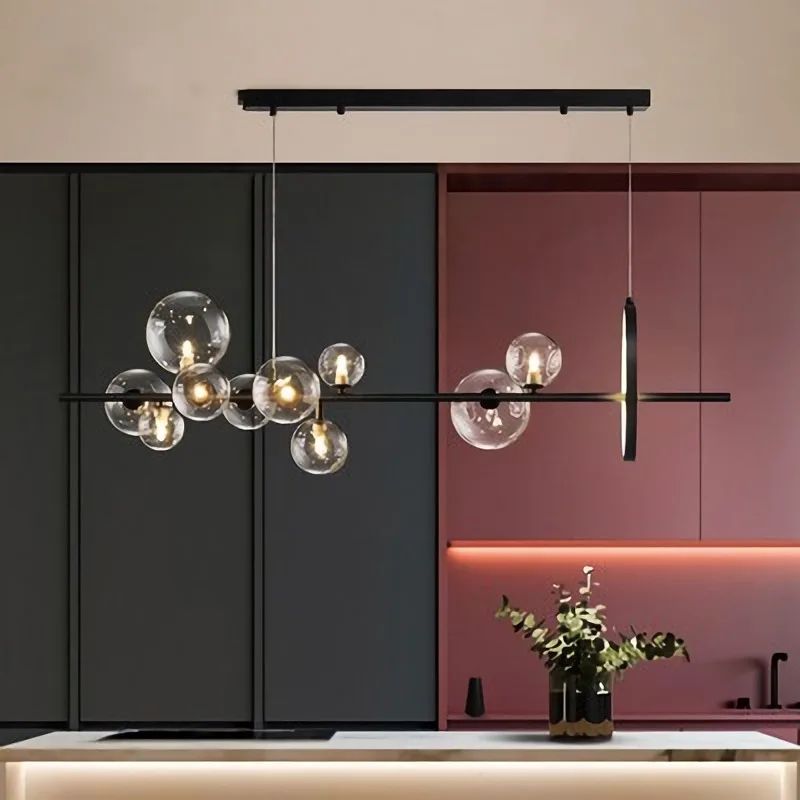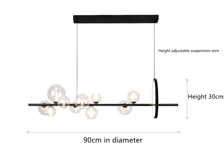 Светодиодный подвесной светильник в скандинавском стиле со стеклянным шариком, черный металлический комнатный декоративный светильник для гостиной, столовой, бара