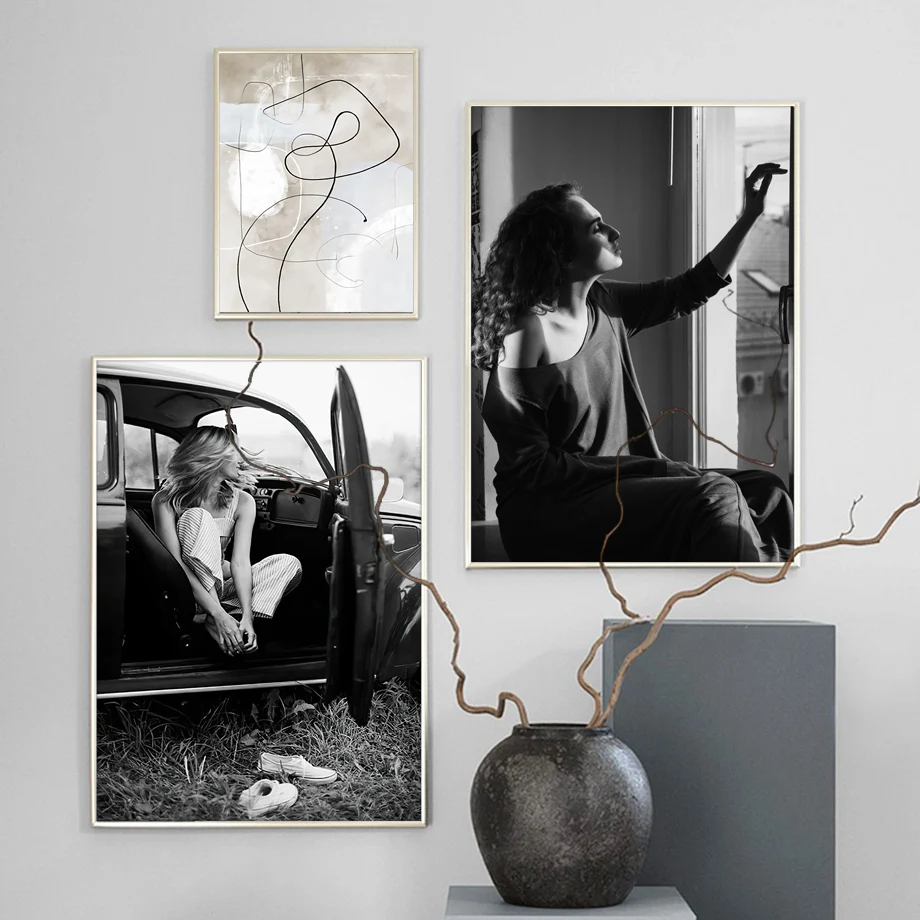 Черно-белый модный винтажный постер для леди, абстрактная линия, настенный художественный принт, Картина на холсте, скандинавские картины для декора гостиной