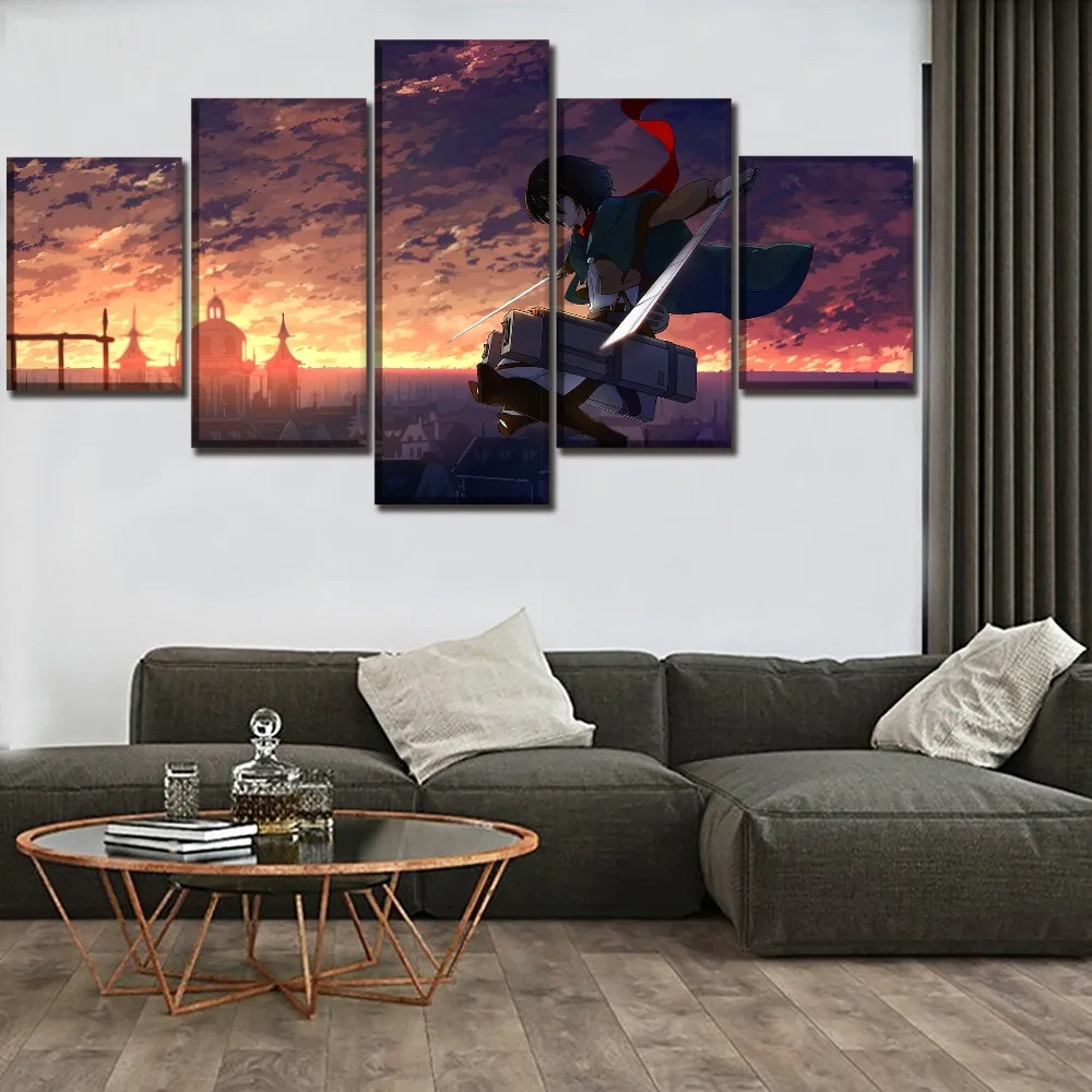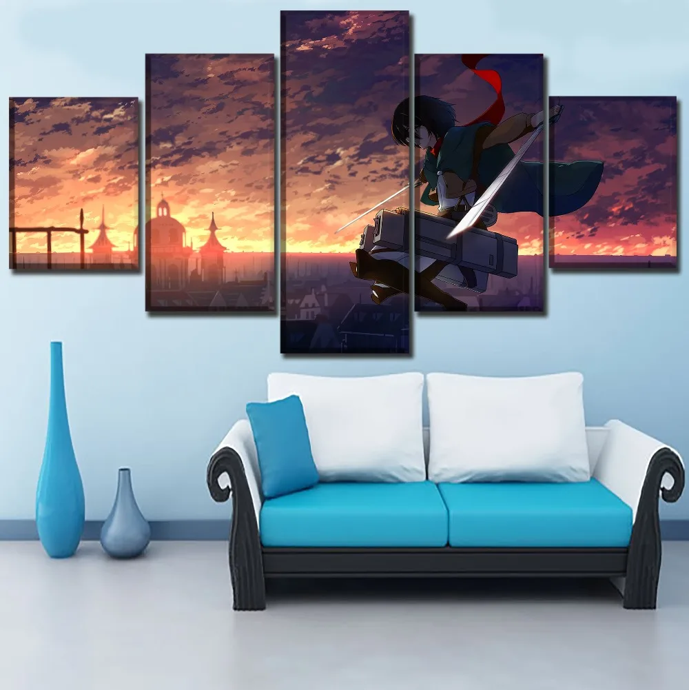 Холст без рамки, 5 панелей, постеры из аниме атака на Титанов, наст...