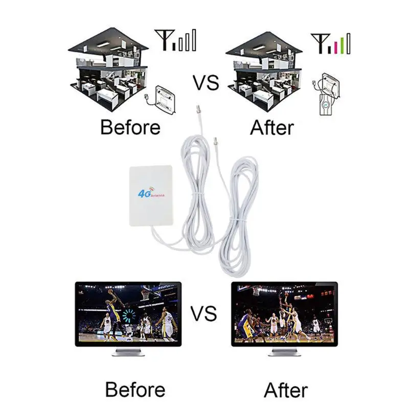 Особенности:1.LTE двойной TS-9 разъем интерфейса внешняя антенна усилитель сигнала 28dBi2. С 2,9 м кабель для 4G/3G Мобильный маршрутизатор (Мобильная точка доступа Wi-Fi-карманный 4G Роутер и 4G USB модем)3. Эта антенна будет работать с мобильными широкополосными устройствами, которые имеют TS-9 порт внешней антенны.4. Значительно увеличивает охват мобильной широкополосной сети и возможности приема Wifi вашего мобильного маршрутизатора 4G/3G, если вы находитесь в области низкого сигнала.5. Он является самым высоким коэффициентом усиления 28dbi 3G/4 аппарат не привязан к оператору сотовой связи антенны, имеет 2 TS-9 с разъемами «Мама» и «папа», длина кабеля составляет 2,9 М.6. Диапазон частот: 700 МГц 860 МГц 960 МГц 1710 МГц 1910 МГц 2400 МГц 2700 МГц.Подходит для маршрутизаторов мобильных сигналов:-HUAWEI E5375, Sunreed MF920.-Vodafone R215, Vodafone R212, Vodafone K5150, Vodafone K5005, Vodafone K5006Z, Vodafone R226.