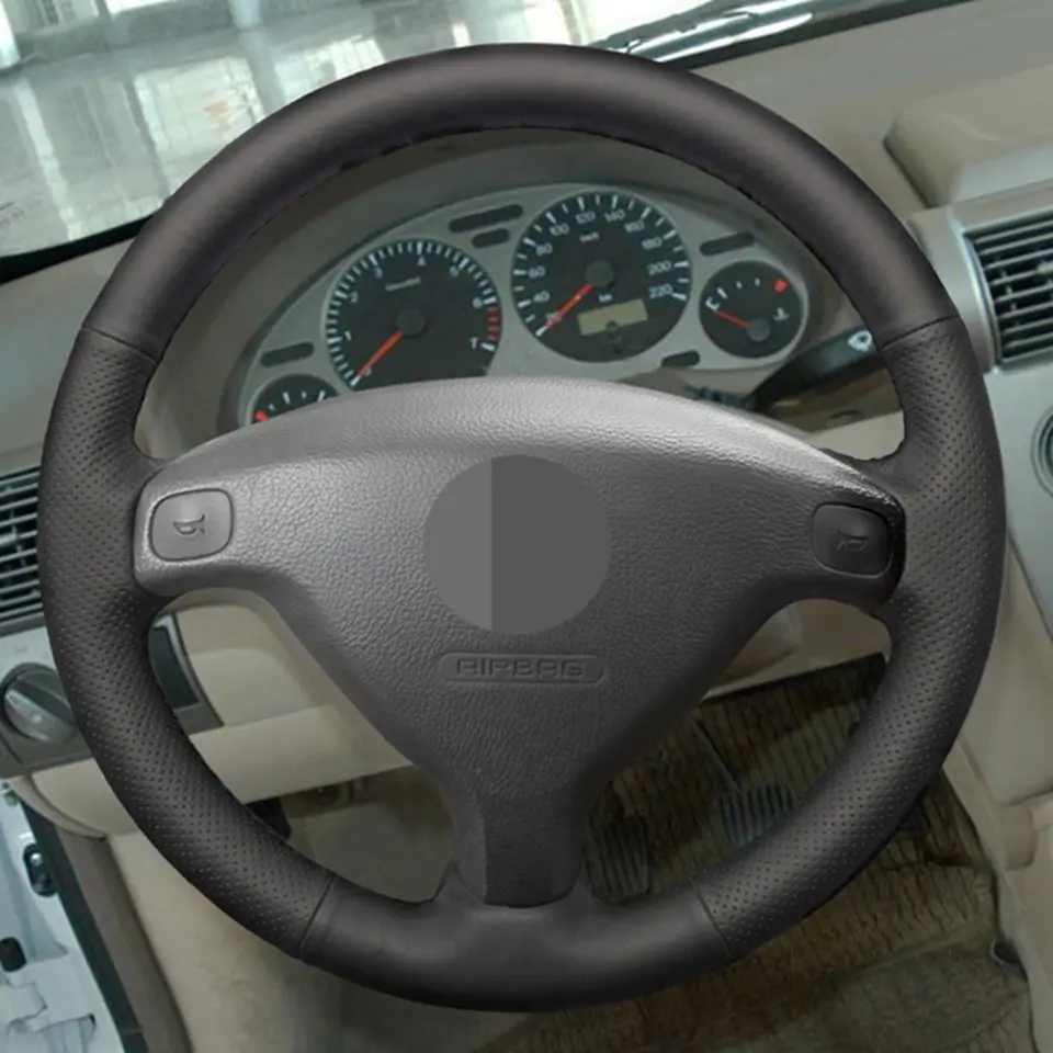 Сшитая вручную черная искусственная кожа Чехол рулевого колеса авто...