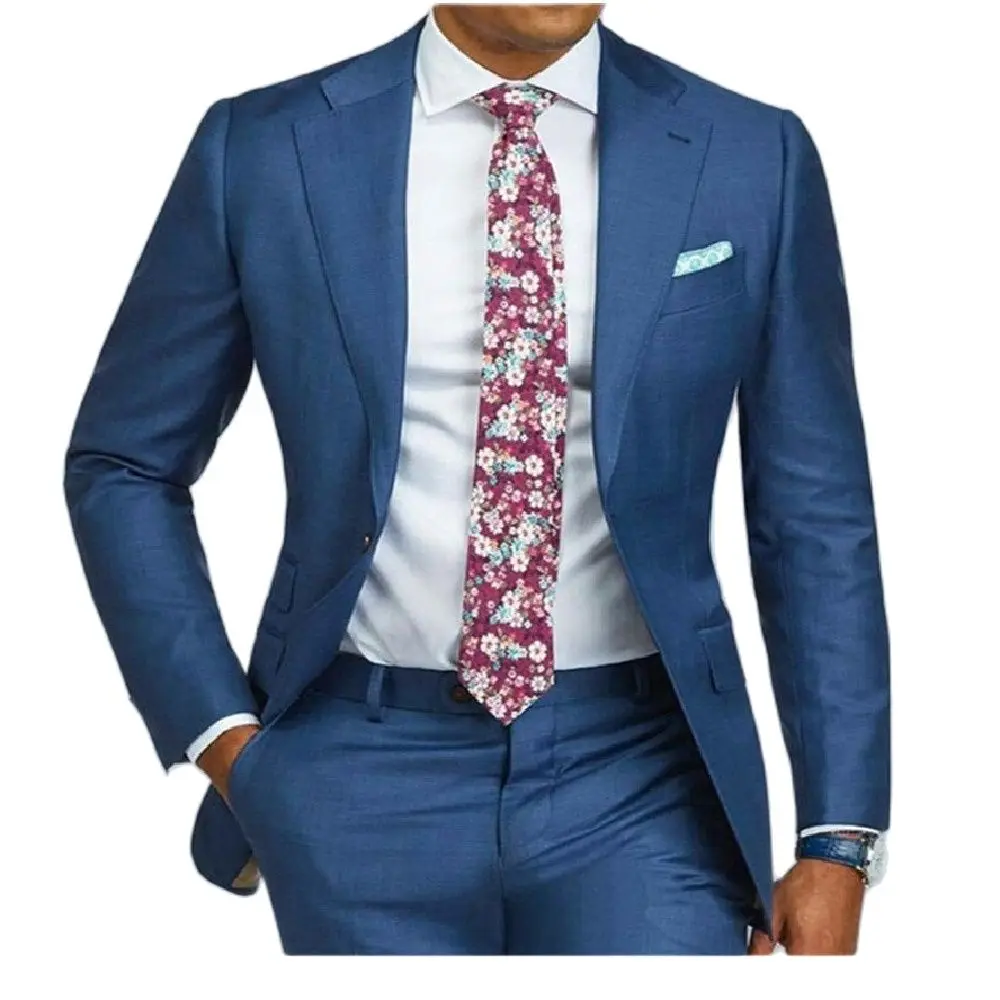 Приталенный мужской костюм, свадебный костюм из 2 предметов, деловой, официальный смокинг, однобортный пиджак, брюки, Блейзер, синий цвет