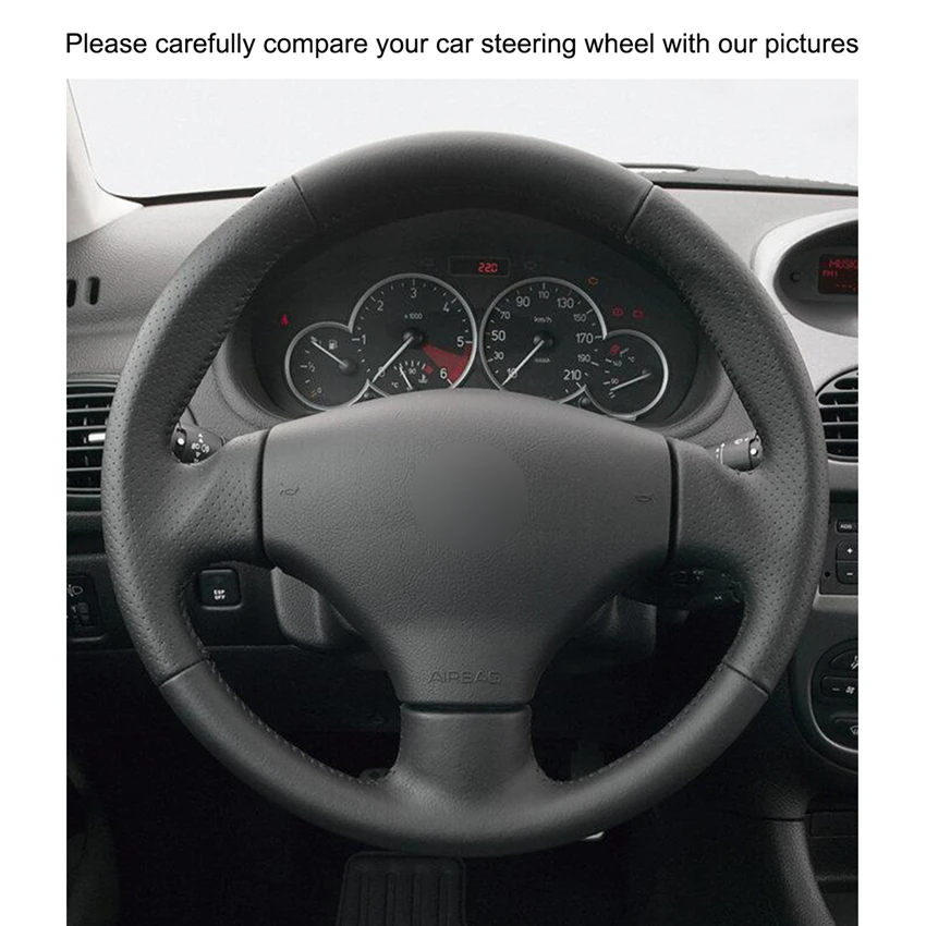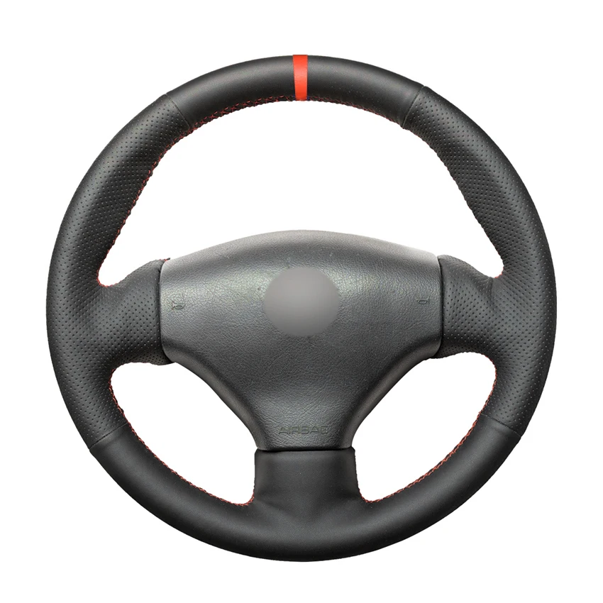 Чехол на руль для Peugeot 206, 1998-2005, SW 206-2003, 2005, 206, CC 2004, 2005, черный, искусственная кожа, красный маркер, прошитый вручную