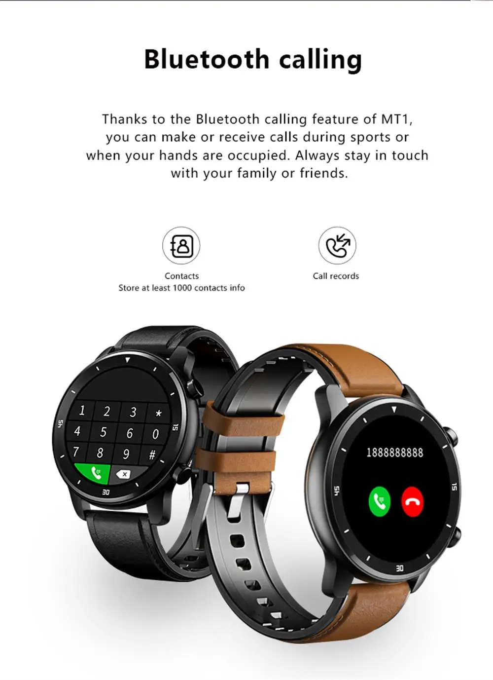 Смарт-часы MT3 мужские водонепроницаемые с поддержкой Bluetooth и сенсорным экраном