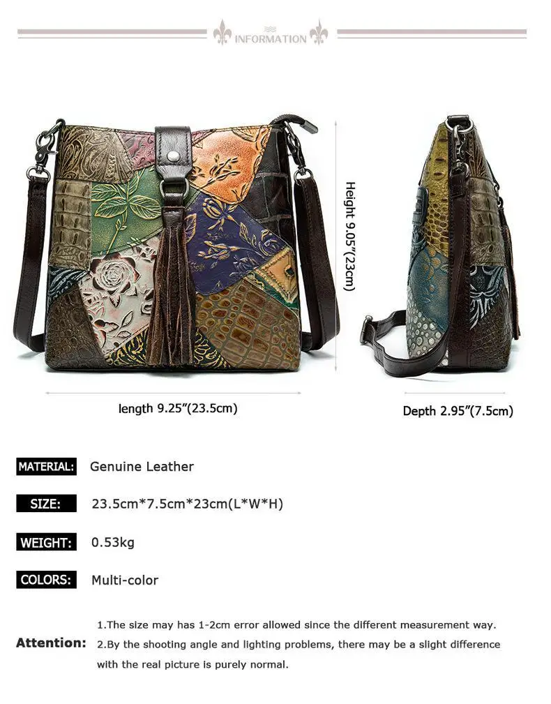 О узорах: Узор сумки разделен на тиснение и печать, тиснение имеет трехмерный эффект.Печать или ручная роспись, это плоский узор, некоторые расписанные вручную могут быть не идеальными. Это нормально.О следов: Мешки имеют слой воска на поверхности. Если товар поставляется с царапинами, это не является проблемой качества. Аккуратно протрите мешок.О материале: Материал сумки-коровья кожа, овчина, искусственная кожа и т. д., мы уточним это, пожалуйста, обратите внимание.