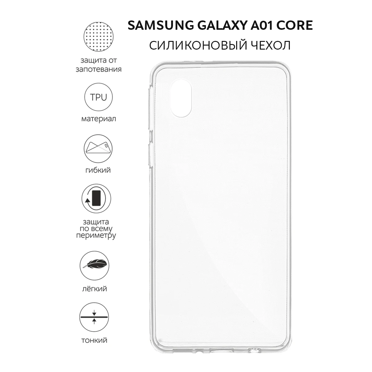 Силиконовый чехол ROSCO для Samsung Galaxy A01 Core с бортиком вокруг модуля камер и защитой от прилипания чехла к смартфону