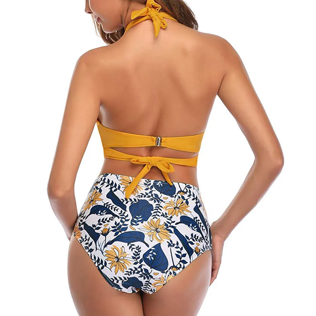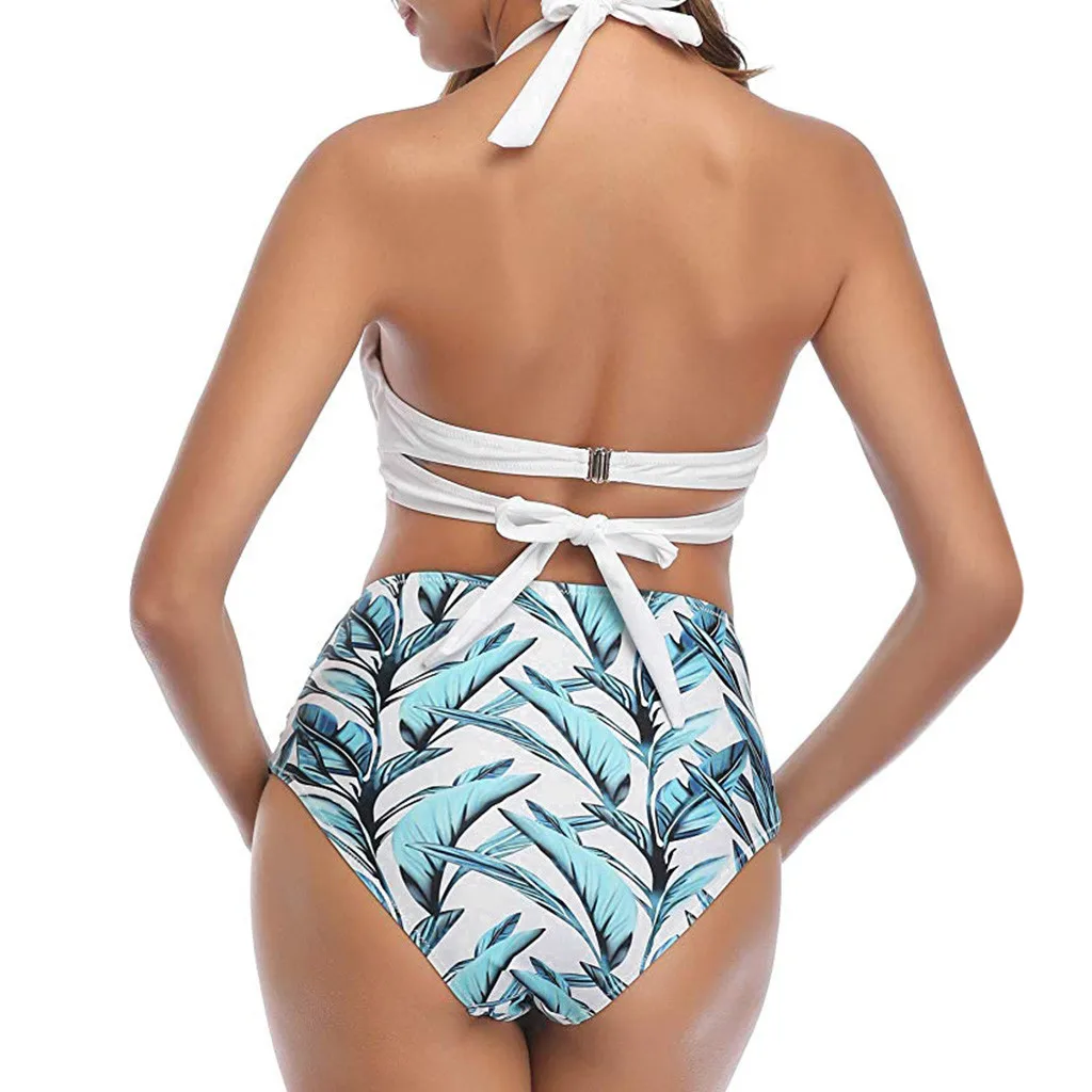 40 # Винтажные висячие шеи танкини женские Листья печати Холтер Куп...