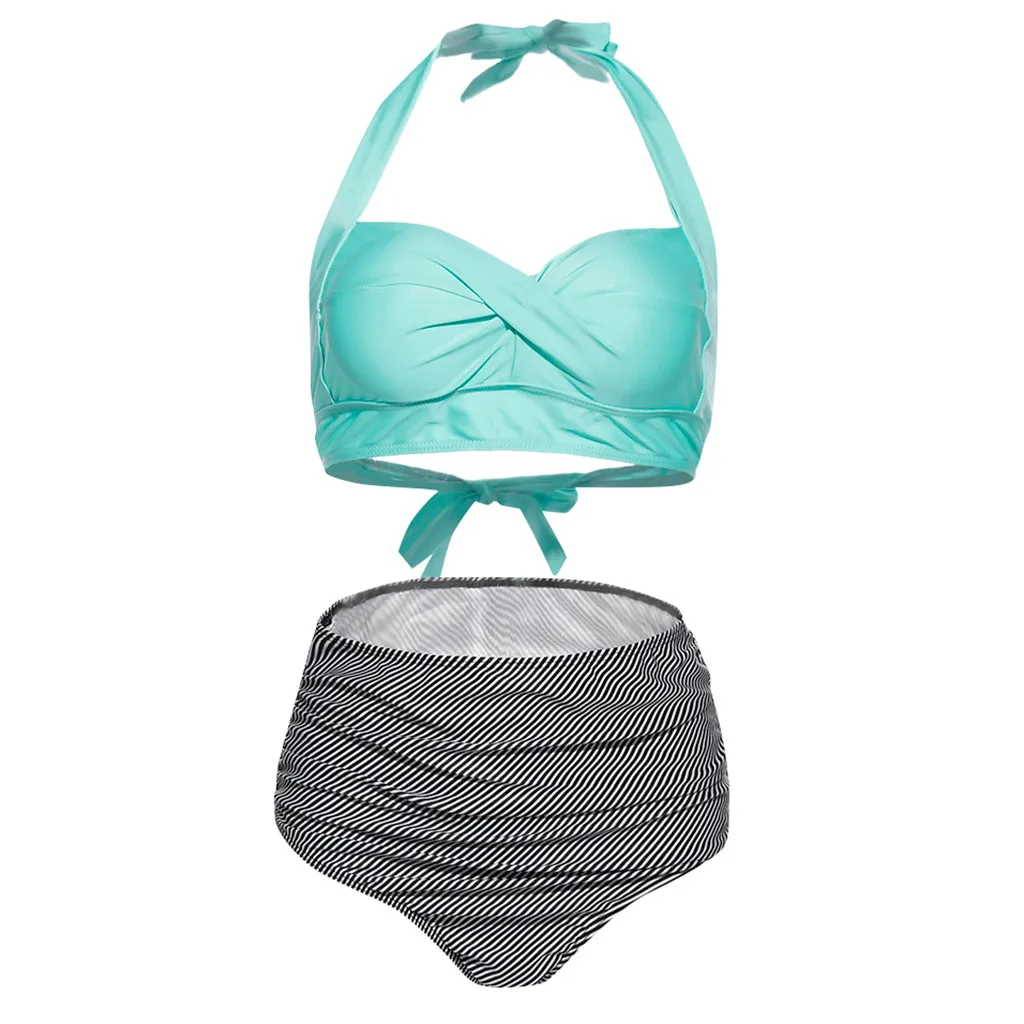 Женский винтажный купальник из двух частей, ретро бикини с высокой талией и рюшами