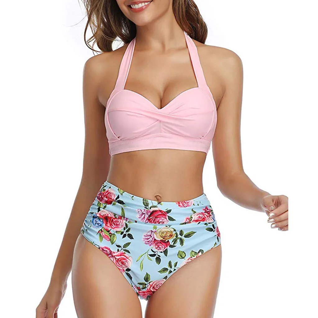 Летняя купальная одежда с лямкой на шее, Женский винтажный купальни...