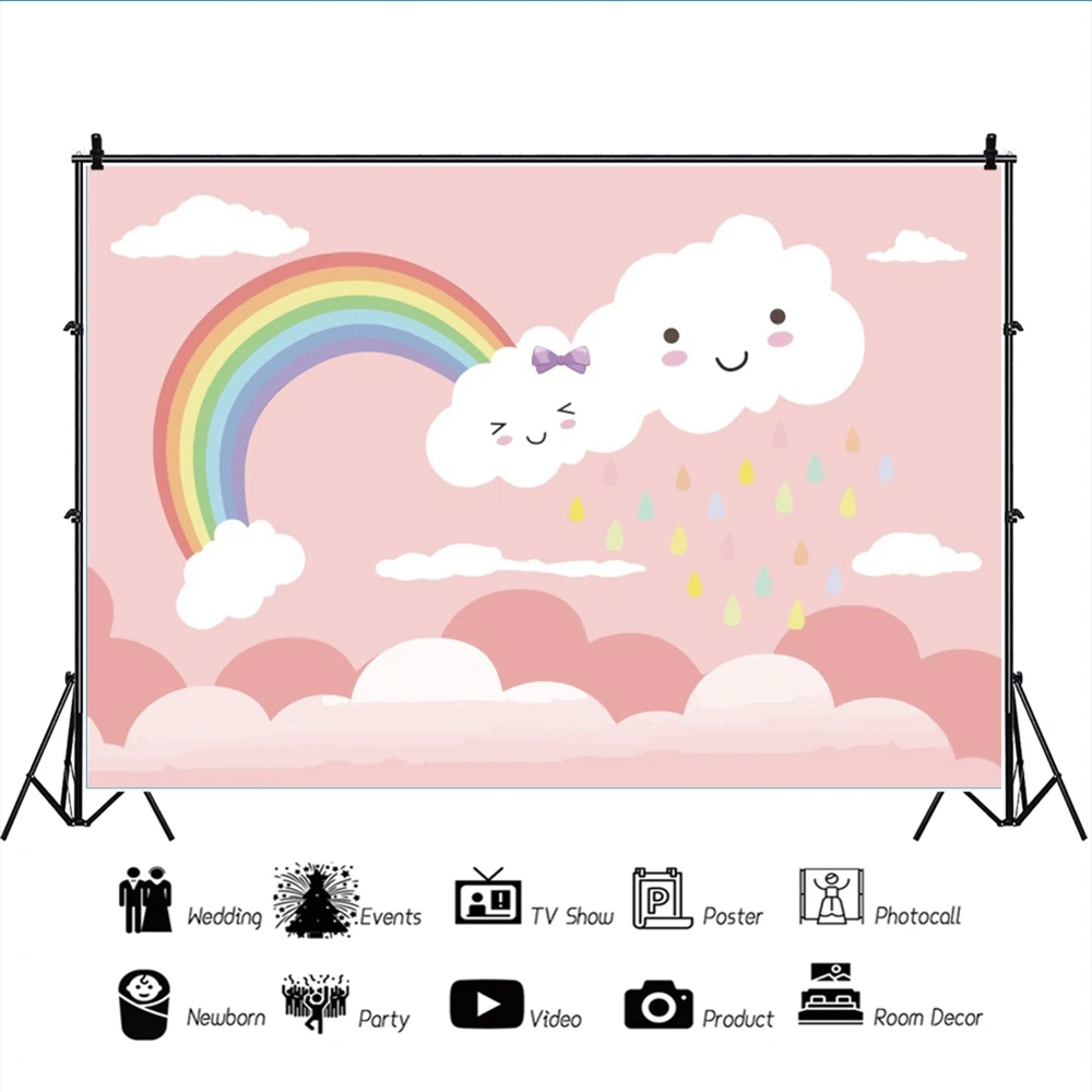 Виниловый фон для фотосъемки новорожденных Yeele с изображением розового неба радуги облаков первого дня рождения