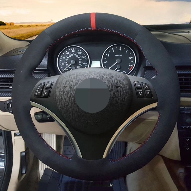 Сшитая вручную черная замша чехол рулевого колеса автомобиля для BM...