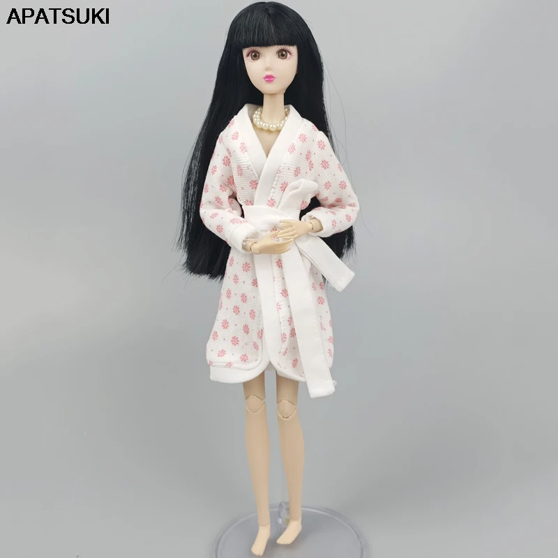 Цветочный халат для куклы Барби, аксессуары, банный халат, костюм для ванной, зимняя Пижама, повседневная одежда для сна, детские игрушки 16