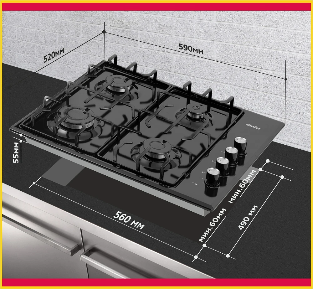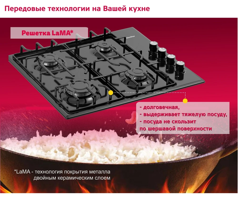 Газовая варочная панель автоподжиг Simfer H60Q40B412 H60Q40B471 Flat LAMA