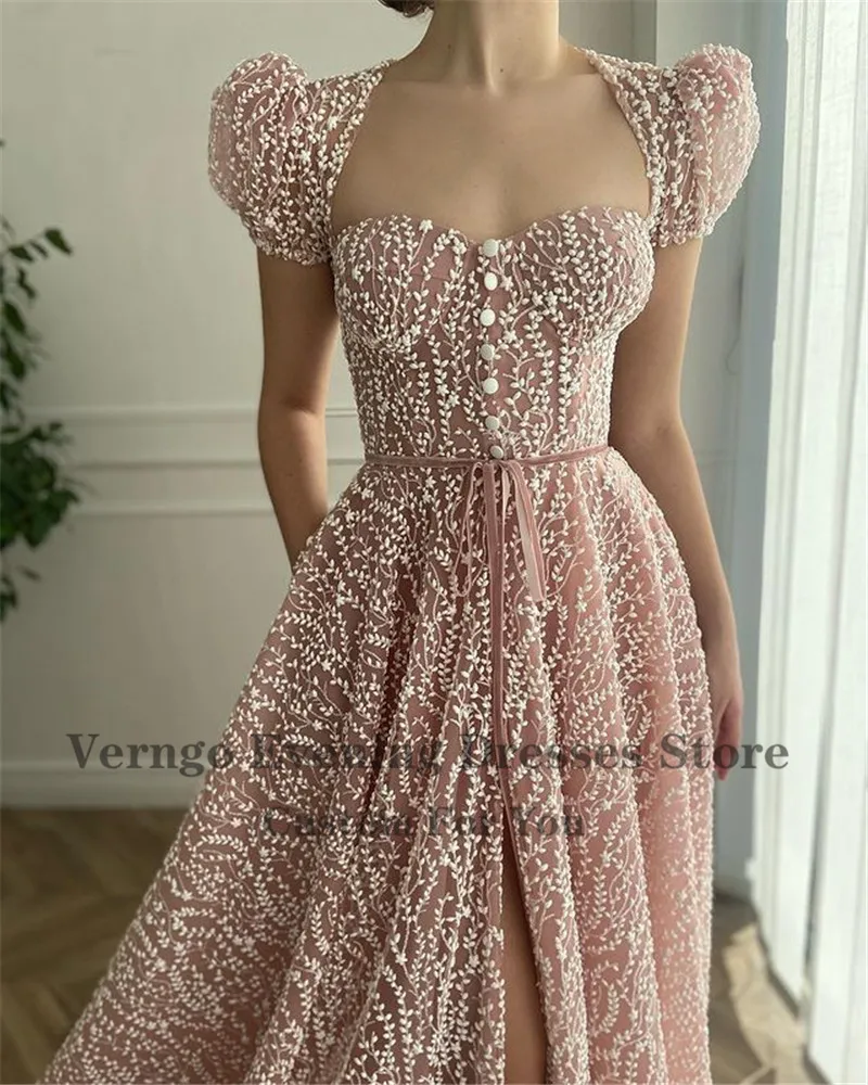 Вечернее платье-трапеция Verngo, розовое кружевное платье с короткими рукавами, пуговицами, до щиколотки, для выпускного вечера, 2021