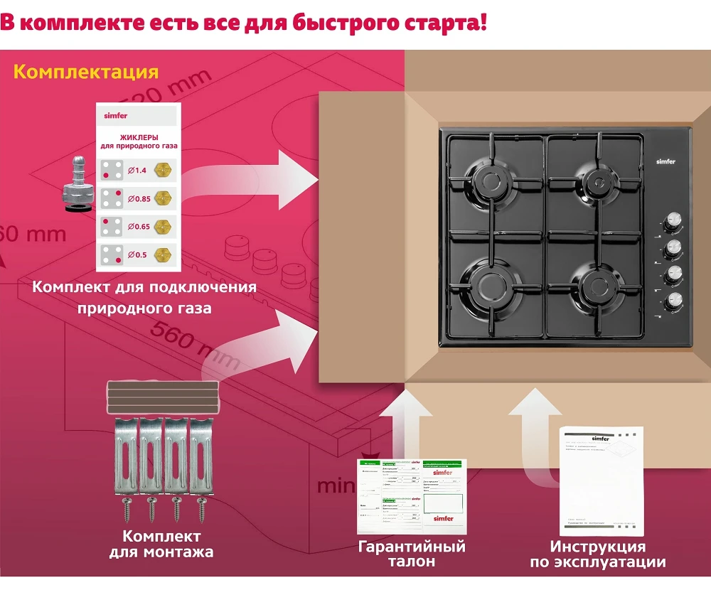 Газовая варочная панель с автоподжигом Simfer H60Q40B401 H60Q40B400