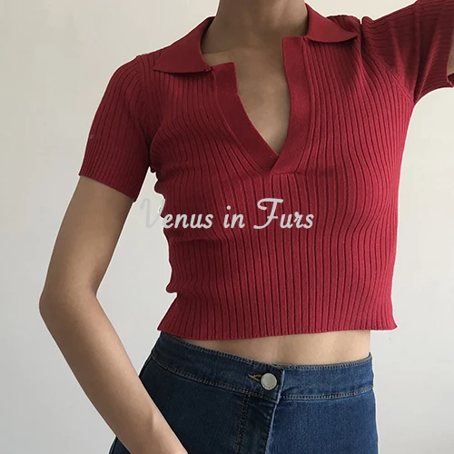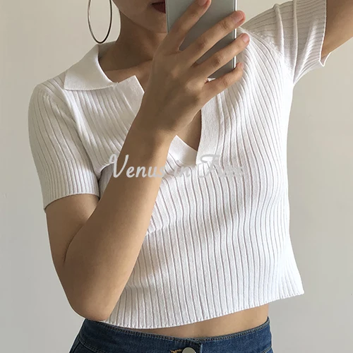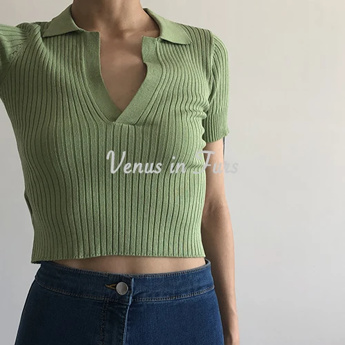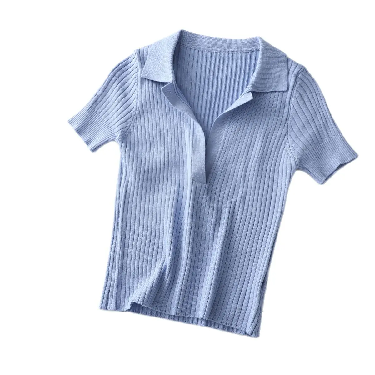 Летние винтажные женские рубашки-поло с коротким рукавом