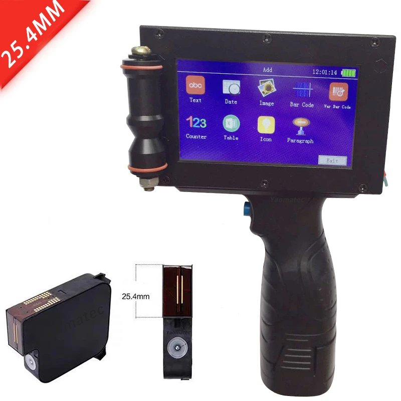 Термопринтер для струйного принтера, 25,4 мм, QR-код партии, изменяемая Дата, изменяемый номер, логотип, Дата истечения срока годности, портативный ручной струйный принтер