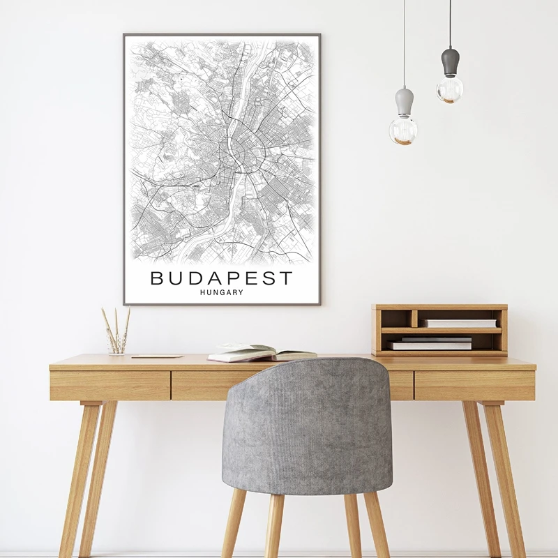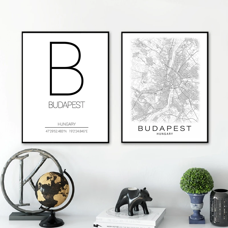 Современная Абстрактная Карта города Будапешт, холст, живопись, черный, белый, венгрийский стиль, домашняя Настенная картина, Скандинавская цитата, декоративная картина