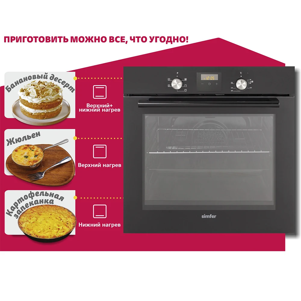 Характеристики Электрический духовой шкаф Simfer B6EB56001, 5 режимов работы, конвекция
