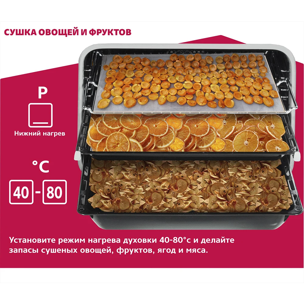 Электрический духовой шкаф Simfer B6EB56001 - современная техника для кухни, которая благодаря многообразию режимов, позволяет готовить не только повседневную пищу, но и изысканные блюда. Она снабжена функцией конвекции, которая равномерно распределяя теплый воздух, пропекает блюдо со всех сторон. С помощью удобных поворотных ручек легко выбрать необходимый режим приготовления для любого рецепта. Встроенная подсветка позволит наблюдать за процессом, не открывая при этом дверцу шкафа, а значит сохраняя тепло внутри.Таймер подскажет, когда блюдо будет готово, а двойное стекло защитит от ожога при случайном прикосновении к дверце шкафа. Эта простая в управлении, стильная и современная техника прекрасно впишется как в классический интерьер, так и в самый современный.Очистка духовки AquacleanДанный метод очистки позволяет удалять жировые отложения, не используя при этом сильные химические вещества, которые могут повредить внутреннюю поверхность духовки. Устанавливаете режим, наливаете воду, которая медленно испаряясь, смягчает загрязнение и после протираете мягкой тряпкой.Режим конвекцияВключенный режим позволит вам использовать с максимальной эффективностью весь объем духового шкафа: даже если вы поставите внутрь два или трипротивня, все равномерно пропечется.