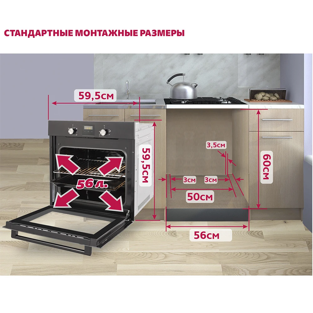 Бренд SimferМощность, Вт 2300Ширина, см 59,5Глубина, см 56,5Высота, см 59,5Комплектация стандартный противень с антипригарным покрытием, хромированная решётка, инструкция по эксплуатации, гарантийный талон.Цвет ЧерныйВес, кг 30Управление МеханическоеНаличие таймера ДаТип таймера цифровойОбъем духовки, л 56Переключатели поворотныеСтрана производства ТурцияРазмер упаковки (ВхШхГ), см 59.5/59.5/61Гарантия производителя, лет 5