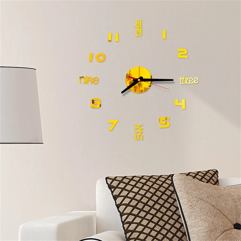 1 комплект Настенная Наклейка с зеркальным эффектом и часами (без аккумулятора)
