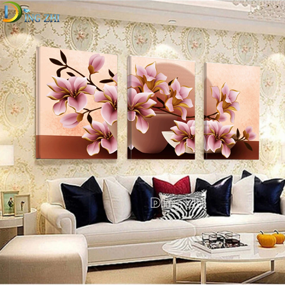 Модульная Орхидея 5D Diy алмазная живопись 3 шт. настенная живопись Ретро Триптих Алмазная вышивка мозаика полностью квадратная/круглая дрель